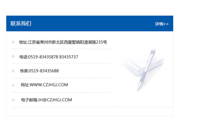 地址:常州市新北區友邦商務大廈1幢16、17層  電話:0519-85101652  傳真:0519-85112595  郵編:213022  網址:www_cz-jiayue_cn.xyinfosec.com  郵箱:xiajifengaa@163.com